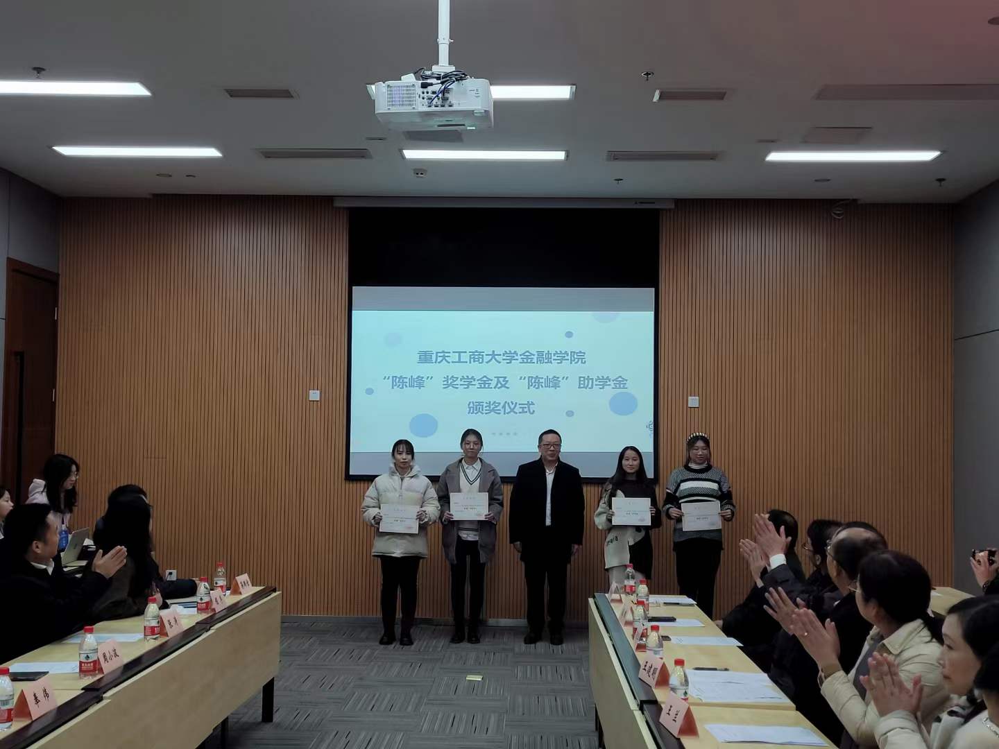 王兰致辞,她对学院校友分会积极搭建平台,挖掘校友资源,凝聚校友力量,以各种途径和形式关心、支持和助力学校、学院的建设与发展表示衷心感谢,希望获得资助的同学们化感恩之心为动力之源,化感激之情为成才之志,立大志、明大德、成大才、担大任,以优异成绩回馈母校和社会!“陈峰”奖学金、“陈峰”助学金的捐赠者陈峰校友虽未亲临现场,但通过一段视频表达了对同学们学业有成、爱校荣校的殷切期望和美好祝愿。