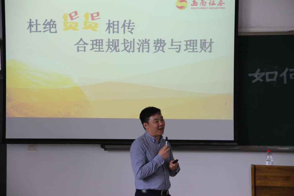 随后,黄立龙经理为在座学生带来了《杜绝“贷”“贷”相传,合理规划消费理财》的讲座。他从“校园贷”的概念与发展历史、“校园贷”的种类与变异,怎样提高风险意识、防范风险,树立正确消费理财观等四个方面出发,用切实生动的语言告诫大学生应该结合自身情况合理消费并对身边的各种“校园贷”提高警惕。