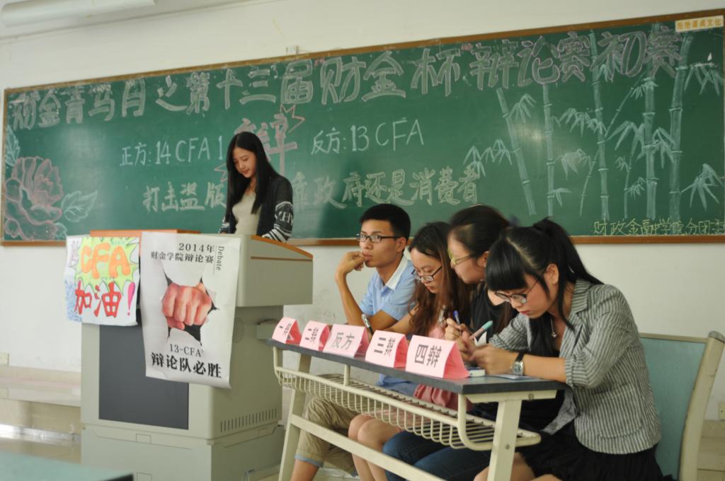 初赛分为两场进行,十九支队伍分别围绕“打击盗版主要靠政府还是消费者”、“应不应该推迟退休年龄”、“舆论反腐是利大于弊还是弊大于利”等辩题展开激烈辩驳。各支队伍准备充分,有理有据,妙语连珠。赛上气氛热烈,观众掌声阵阵。赛后,来自财金辩论队的评委们对参赛队伍及选手的表现进行了精彩点评。