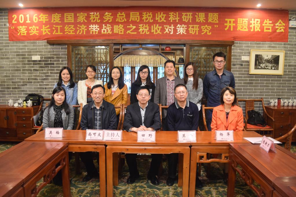 2016 年4月22日 上午,《落实长江经济带战略之税收对策研究》课题开题报告会在我校南山书院成功召开。参加本次报告会的有重庆市地方税务局法规处处长田野和副处长吴梅、taptap点点体育经济贸易学院院长兼教育部长江上游经济研究中心基地副主任陈新力教授、taptap点点体育财政taptap点点体育书记杨萍教授和常务副院长莫云副教授、课题组成员曾胜博士及贾鸿副教授等。