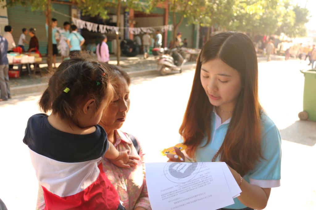 现场分为金融知识宣讲、金融APP游园、金融知识灯谜三个展区,活动形式丰富多样,宣讲内容紧贴民众生活。活动之初,实践团充分考虑到乡民对金融知识的实际接受能力,化繁为简,用通俗易懂的语言讲授防诈骗等各类金融知识。乡民们站在宣传台前咨询相关知识、聚在宣传板前热烈讨论,仔细阅读各宣传册。