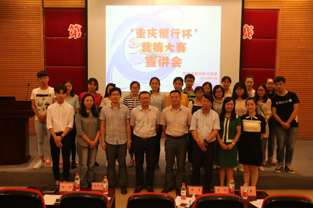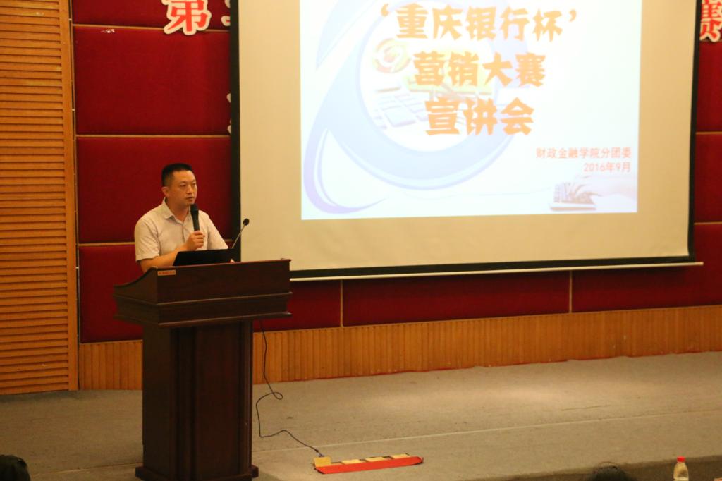 为提升财金学子的综合能力,弘扬财金文化,彰显财金特色,9月23日下午2点,财政taptap点点体育第六届“大学生金融节”之“重庆银行杯”营销大赛宣讲会在7200报告厅拉开帷幕。重庆银行个人银行部总经理陆勇、企业文化与公共关系部总经理助理丁晓、个人银行部产品开发及营销中心经理兼九龙坡广场支行行长助理叶嘉、财金学院党总支副书记刘代成、分团委书记徐阔出席本次宣讲会。