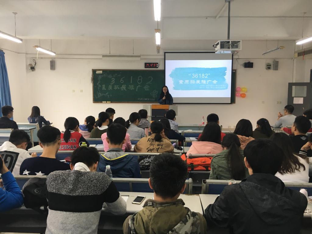 为全面提高大学生的综合素质,培养学生勤奋学习、勇于创新的精神,开辟一条锻炼自我、走向成功的道路,学校特别制定并逐步完善了《taptap点点体育素质拓展第二课堂活动学分管理办法》,将“36182”素质拓展工程贯彻落实到16级新生中去。2016年10月15日下午,“36182”素质拓展推广会在博智楼403如期举行。财政taptap点点体育分团委学生会副主席庞世强、校学生会素拓部部长何凯萌、财金学院分团委学生会素拓部部长陈曦曦、余柔芳出席活动。