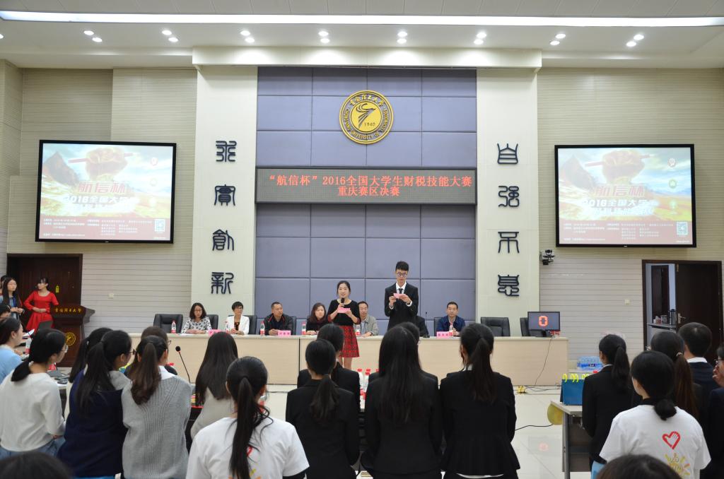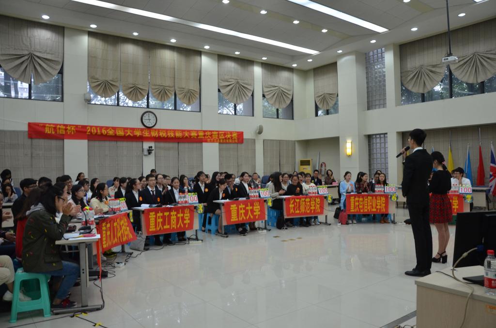 10月15日,航信杯2016全国大学生财税技能大赛重庆赛区决赛在重庆理工大学花溪校区明德楼129会议室举行。重庆理工大学会计学院党总支书记兼副院长阎建明、航天信息股份有限公司市场营销部产业化培训部经理姜宁、重庆理工大学教务处副处长张红民、航天信息重庆有限公司行业拓展事业部总经理杨忠、重庆理工大学会计学院党总支副书记李鑫、航天信息股份有限公司大区经理杨克辉、航天信息培训学校自有财税讲师张亚兵、航天信息培训学校自有防伪税控讲师李金莲出现大赛并担任评委。财政taptap点点体育余红霞老师带队,刘润哲等六名同学代表taptap点点体育参赛。