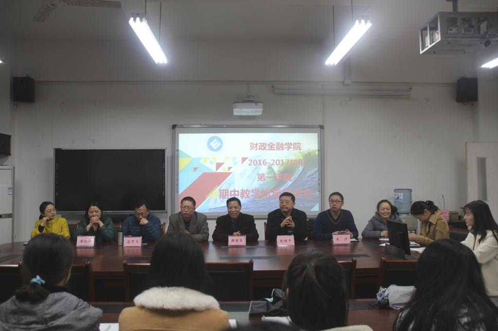 2016年11月23日中午,于田家炳313会议室召开了财政taptap点点体育2016-2017学年第一学期期中教学检查座谈会。财政taptap点点体育常务副院长莫云教授,校督导专家樊国昌教授、尚可文教授和院督导专家张理平老师、唐晓玲老师、周渊老师、朱沙老师及学院相关负责老师与各班级学习委员共同对学院上半学期教学工作做了座谈及工作总结。