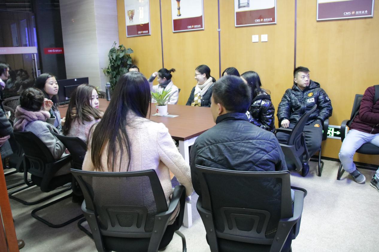 2016年11月28日下午,taptap点点体育2016级金融硕士学生在任课老师骆志芳教授的带领下,走进了位于南岸区五公里的招商证券公司,开展金融机构与金融市场课程移动课堂。