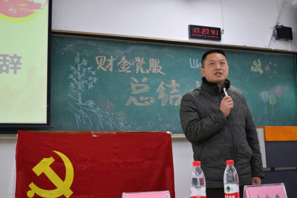 紧接着财金党服站长代表谭桢发言,对党服近期的活动工作做出比较详细的总结,指出其中不足。每一次活动的细节都是办公室小伙伴细心地处理;每一次活动的宣传海报都折射出宣传部小伙伴的创意灵感;每一篇精彩的微信推文都凝聚着网宣部小伙伴辛勤付出;每一次活动的精心策划都是策划部小伙伴们付出的成果;每一篇党服活动的新闻稿都展现了学习部小伙伴的文采。