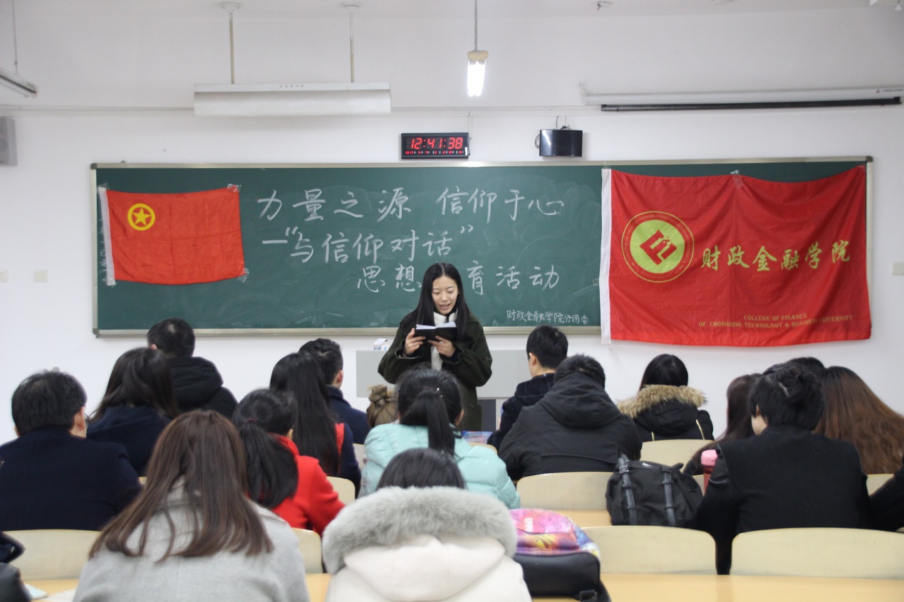 2017年3月3日,财政taptap点点体育分团委在博智楼212教室举办了以“与信仰对话”为主题的思想教育活动,财政taptap点点体育分团委副书记刘玉华向与会的财金学院各团支部书记进行了相关精神的传达及宣讲,taptap点点体育官网的团干团员、班级代表积极响应并踊跃参加了本次活动。