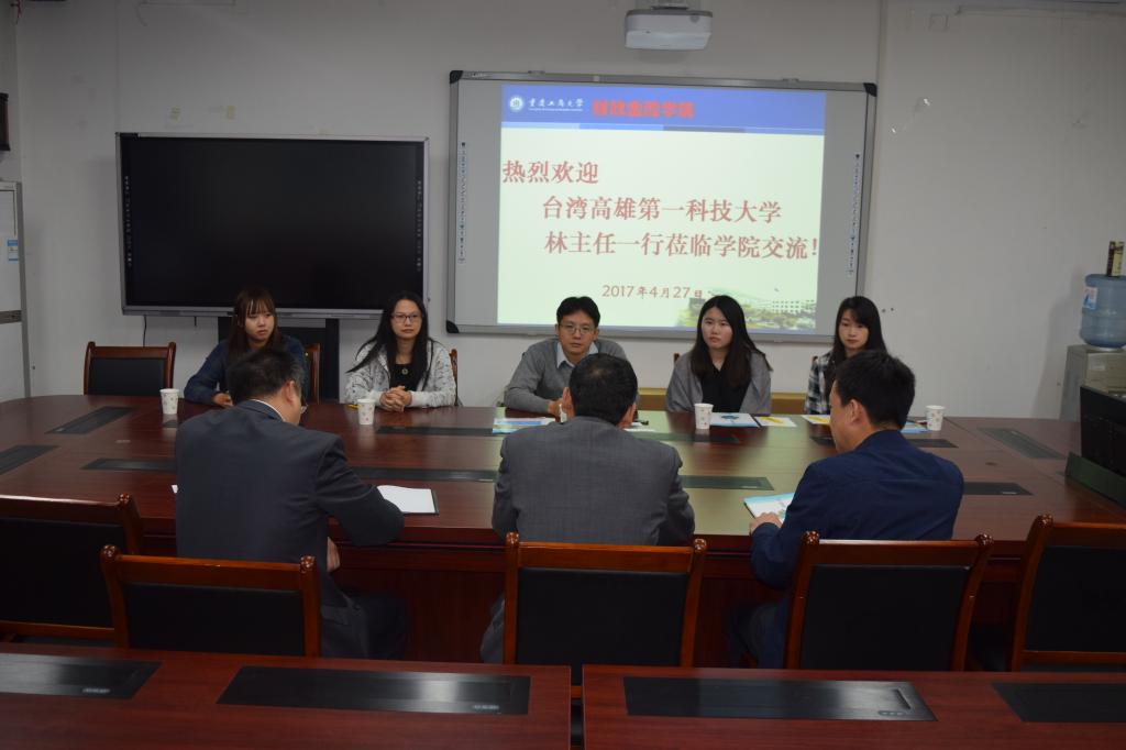 4月27日上午,财政taptap点点体育会议室,学院班子集体接待了来自高雄第一科技大学金融系的系主任林君瀌教授等五人一行。