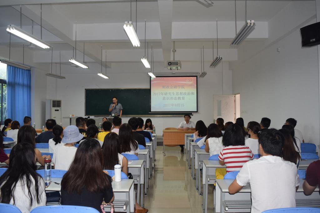 刁孝华院长代表学院欢迎各位研究生加入财政taptap点点体育这个大家庭,并对全体新生表示祝贺。就思想政治与意识形态教育作了专题讲座,旁征博引,风趣而深入,希望大家坚持文化自信,在今后的学习生活中政治立场坚定,有追求有理性,人生目标明确。