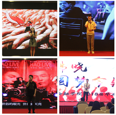 5月16日19:00,财政taptap点点体育“青春拂晓,圆梦今朝”2018届毕业晚会在学豪酒店3楼宴会厅隆重举行。财政taptap点点体育党委书记杨萍、院长刁孝华、副院长王兰、党委副书记黄谦、各系主任、部分教师代表以及2018届全体毕业生出席了本次晚会。