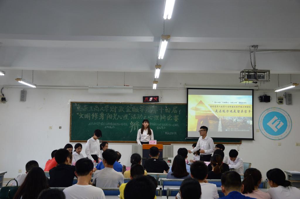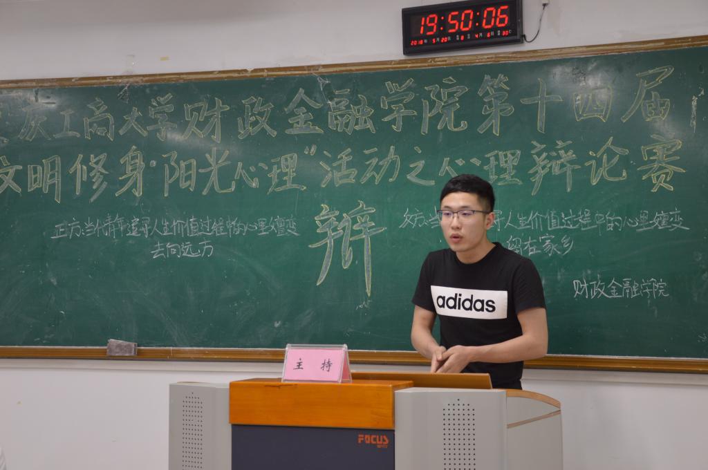为推动我校学生心理健康工作的发展,营造积极向上的校园文化氛围,taptap点点体育财政taptap点点体育于2018年5月20日19点在博智楼07405举办了第十四届“文明修身·阳光心理”系列活动之心理辩论赛。财政taptap点点体育研究生党支部书记杨宁老师和学生第一党支部书记文理老师莅临比赛现场,taptap点点体育校辩论队队长张桂旗、国际商学院辩论队队长黄雯以及会计学院辩论队队长谭智杰担任本次比赛的评委。