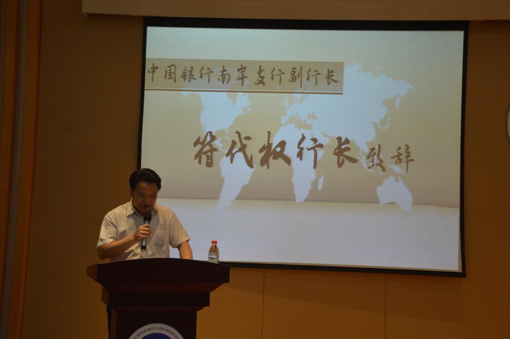 首先,中国银行南岸支行副行长符代权上台致辞。他指出:金融是现代经济发展的核心,中央对金融财政等方面十分重视,因而这样的人才是被国家所需要的。正因为有了这样一个好的平台,所以同学们应抓住这次机会展示自己。在对同学们表现出积极参赛的态度感到欣慰的同时,他也祝愿此次大赛能够取得圆满成功。