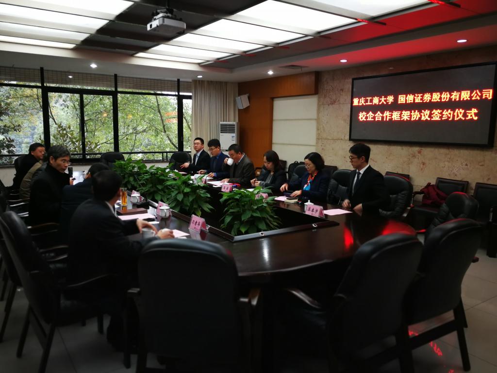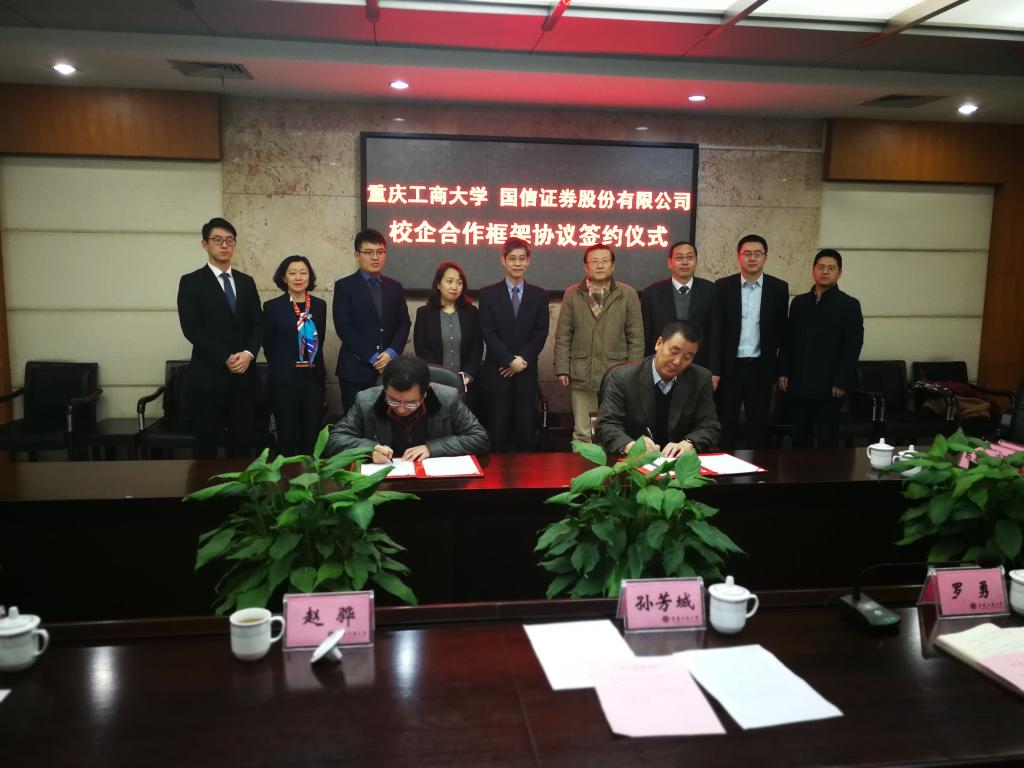 1月18日下午,为加快贯彻落实《重庆市以大数据智能化为引领的创新驱动发展战略行动计划(2018-2020年)》等文件精神,taptap点点体育与国信证券股份有限公司在厚德楼3019会议室签订战略合作协议。国信证券股份有限公司副总裁徐敬耀、投研总监陈俊杰、重庆分公司总经理高莉、总经理助理李颖、业管部负责人陈哲,我校校长孙芳城教授、副校长赵骅教授、党政办、教务处以及财政taptap点点体育主要负责人出席了签约仪式。仪式由校党政办主任罗勇教授主持。