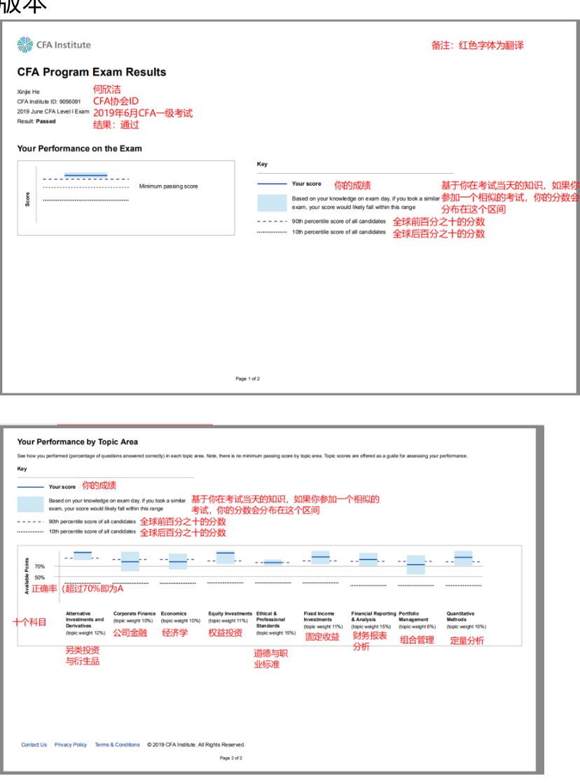 CFA全称 Chartered Financial Analyst (国际注册金融分析师),是全球投资业里最为严格与高含金量资格认证,被称为全球“金融第一考”,为全球投资业在道德操守、专业标准及知识体系等方面设立了规范与标准。考试内容涵盖了广泛的金融知识,同时结合当年最新的金融市场相关知识以及最新金融领域研究成果加以考察。考试的难度每级递增,即考生只有通过了前一级,才能参加下一级的报名。考试虽不属于注册考试,但通过Level II和Level III的难度极高。每年各级全球通过率约为35%(条件概率)。