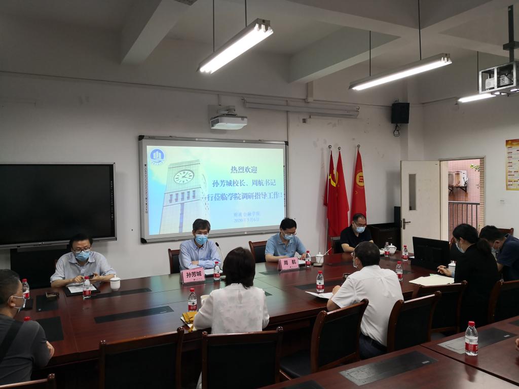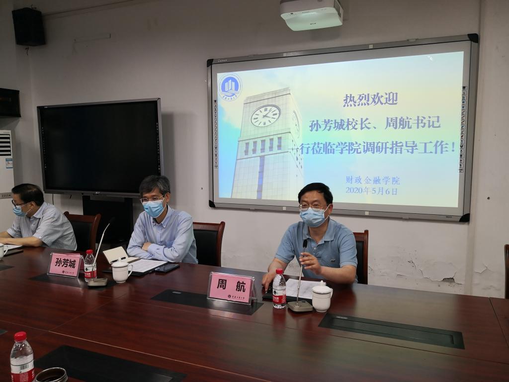5月6日上午,校长孙芳城、校纪委书记周航一行到财政taptap点点体育调研指导学科建设和疫情防控工作,并在田家炳313会议室召开调研座谈会。教务处处长靳俊喜,研究生院院长田双全,以及学院领导、各系主任、财税系全体教师和部分辅导员参加了会议。