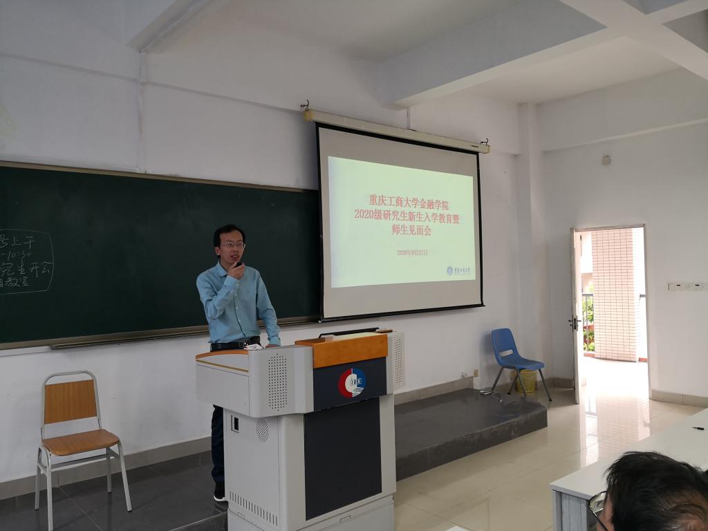 导师代表靳景玉教授就何为研究生,金融研究生的特点做出了介绍,并对研究生新生们提出了尊重科学、善于发现问题,善于利用平台,充分共享交流互相学习以及强身健体劳逸结合的要求。