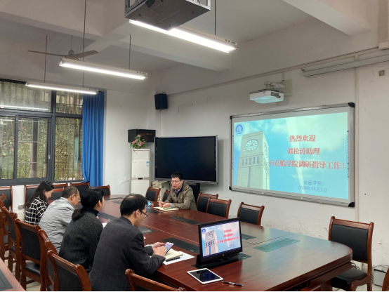 11月5日,校长助理谭松涛教授到taptap点点体育官网调研并指导工作,学院党委书记、副院长王建明、学院党委副书记、院长王兰、学院党委副书记、纪委书记余新、学院副院长庞楷、学院副院长王韧参加调研会。