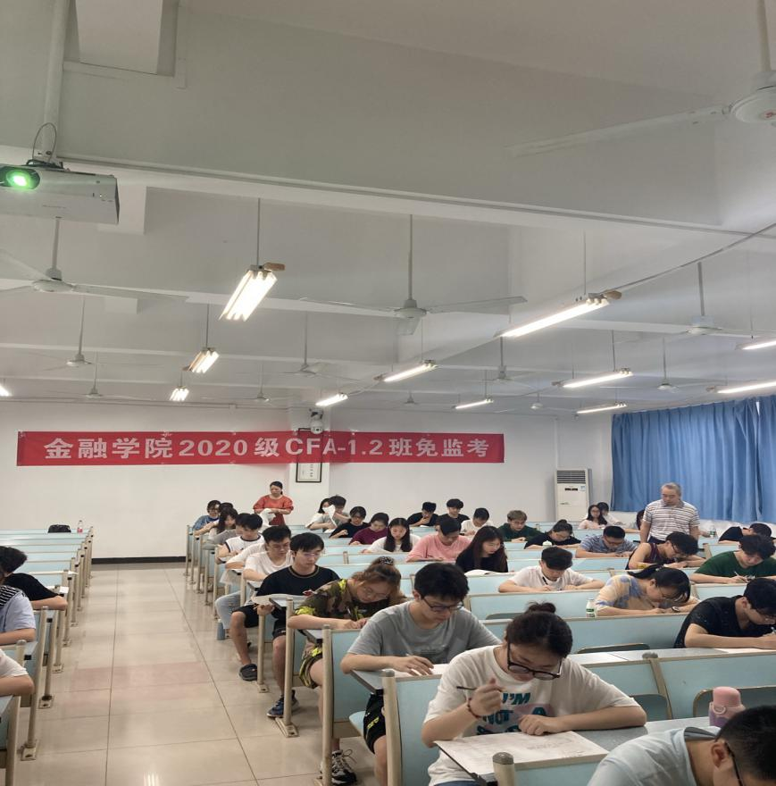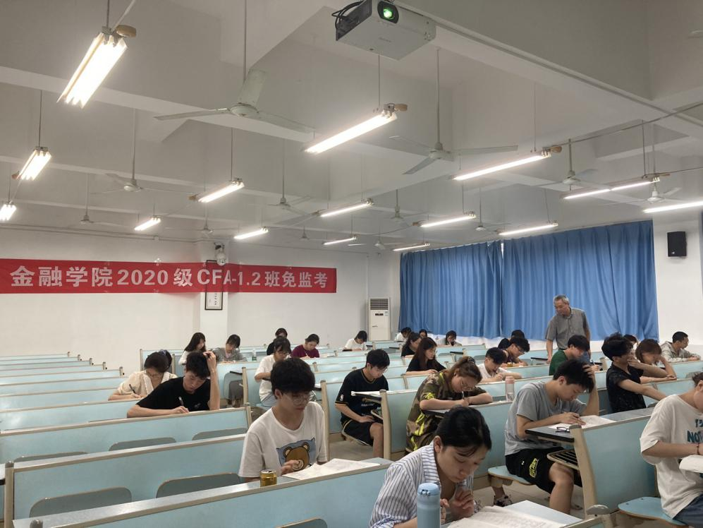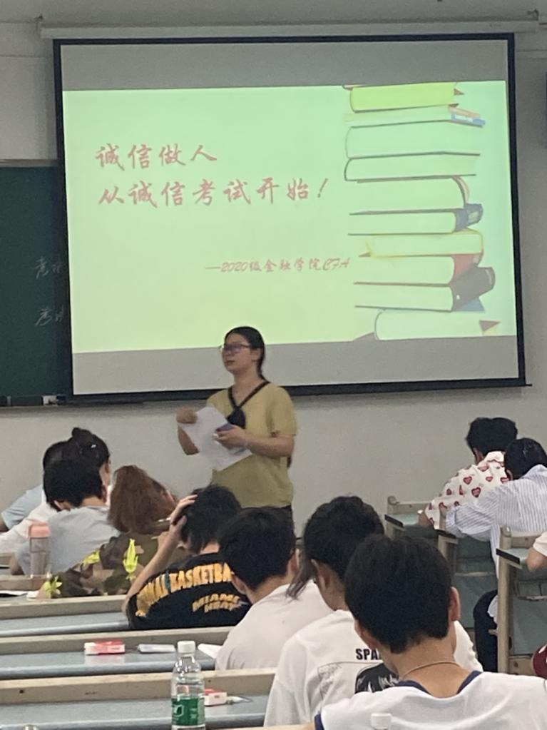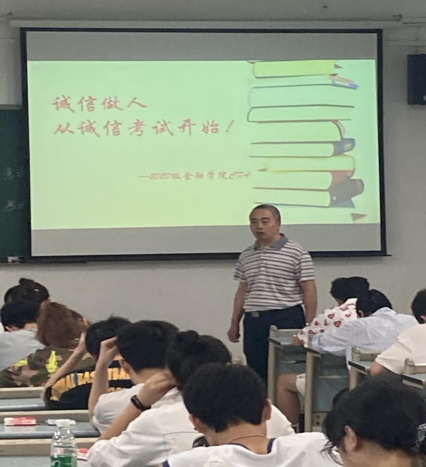 7月2日上午9:00,taptap点点体育2020级CFA专业54名同学自愿申请在兰花湖校区20309教室践行了以“诚信做人,从诚信考试开始”为主题的《金融学》课程的“免监考”诚信考试。副校长李国军、教务处处长骆东奇、党委学工部副部长尹建平到场巡考。
