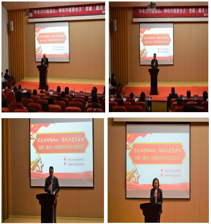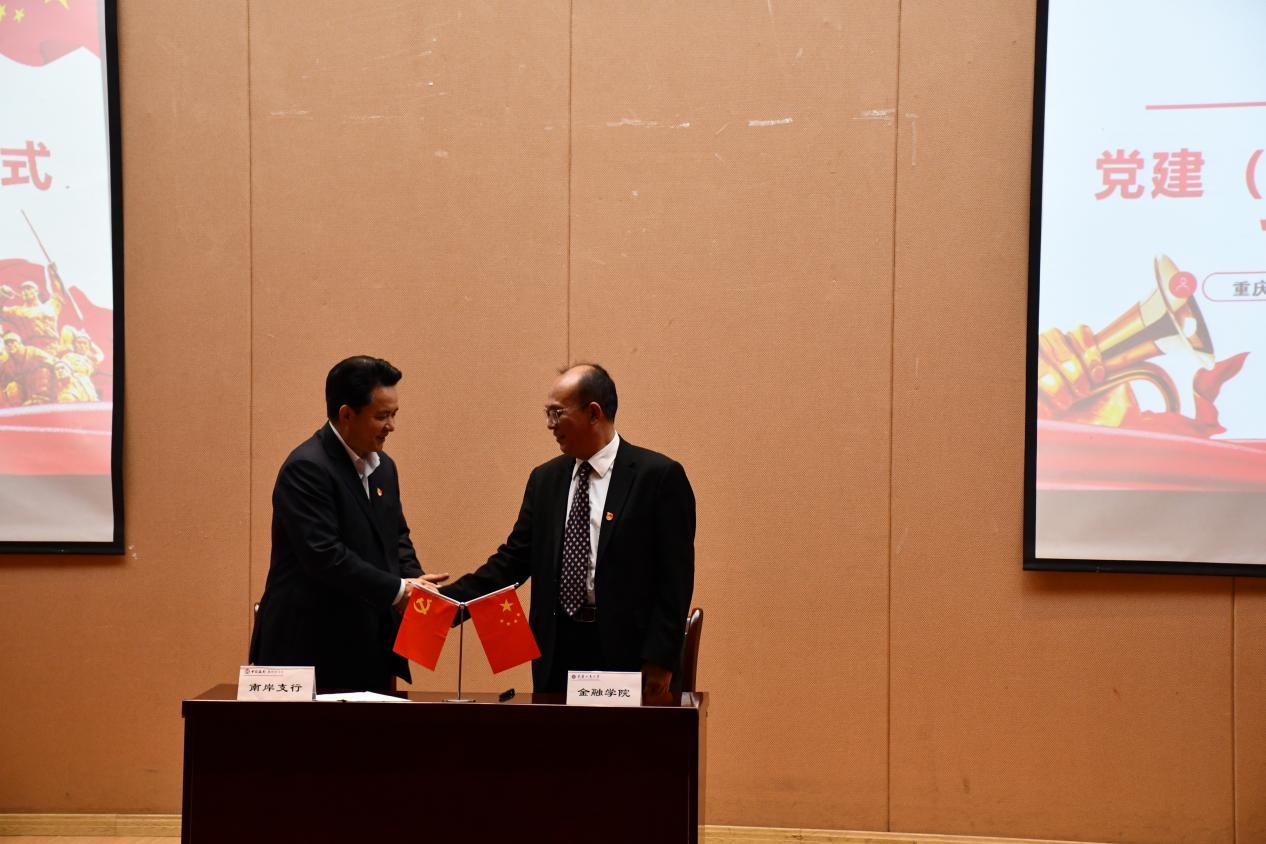 为庆祝中国共产党成立100周年,深入学习贯彻习近平总书记在党史学习教育动员大会上的重要讲话精神和在庆祝中国共产党成立100周年大会上的重要讲话精神,强化银校共建,助推融合发展,10月15日下午,taptap点点体育党委与中国银行重庆南岸支行党委在田家炳209报告厅联合开展党建(廉洁)共建暨百年百校主题活动。中国银行重庆南岸支行党委委员、副行长符代权、王霜,taptap点点体育党委书记、副院长王建明,党委副书记、纪委书记余新,党委委员、副院长庞楷,党委委员、专职组织员赵甫刚及各党支部书记出席了活动。活动由余新主持。