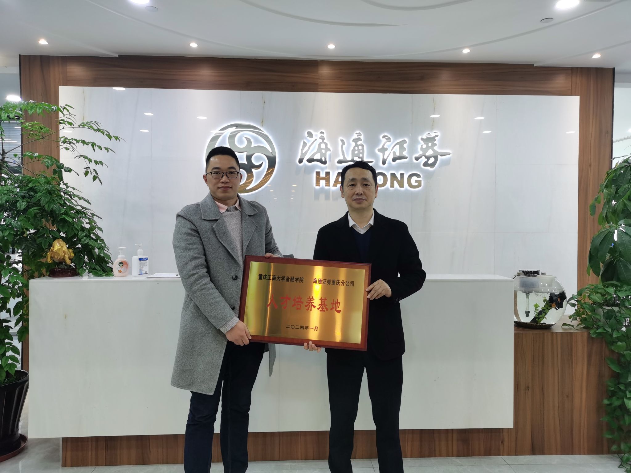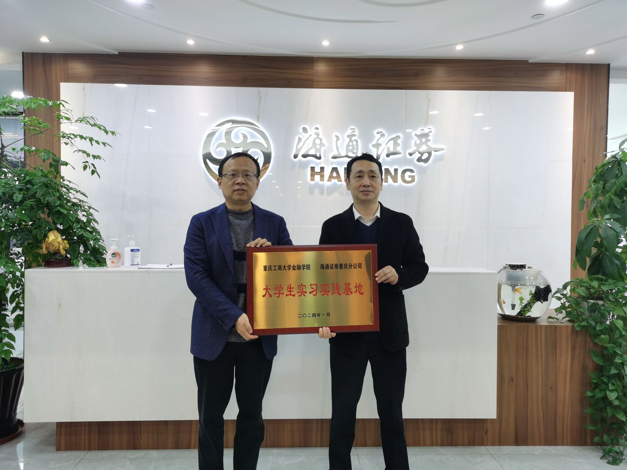 座谈会上,海通证券(重庆分公司)罗舟总经理对学院表示热烈欢迎,表示校企双方有着深厚的历史渊源,工商校友是海通证券科研管理队伍中不可或缺的力量,为企业发展作出了重要贡献。双方还针对学院人才培养、院企合作、实习就业、学科竞赛等多个方面进行了多维度、深层次的交流。taptap点点体育党委书记石世明和副院长魏琪在发言中向海通证券一直以来对学院专业实习、毕业生就业等工作的支持表示感谢,学院高度重视与海通证券的合作,希望双方继续保持紧密联系,拓宽合作领域,深化、丰富在人才培养、学科竞赛、党建工作等方面深层次合作。最后,学院与海通证券举行了“大学生实习实践基地”与“人才培养基地”的授牌仪式。