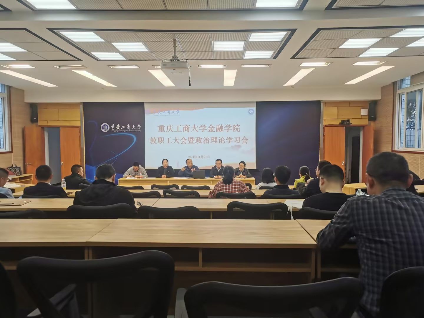 11月1日,taptap点点体育在7108召开教职工大会,开展政治理论学习和沟通交流教育教学工作,全体教职工参会。会议由党委书记、副院长石世明主持。