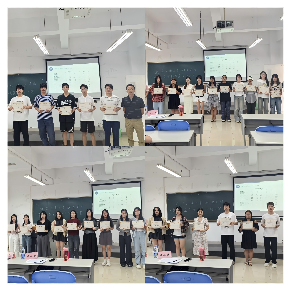 本届大赛邀请了CFA项目班2023级全体学生参与,共组成7支队伍展开激烈角逐。赛事紧扣“国际化”与“实战化”主题,要求各团队从四家候选企业中任选目标,完成全英文投资分析报告及展示答辩,高度模拟金融分析师真实工作场景。从报告撰写到PPT展示、现场答辩,全程使用英语,对标国际金融执业标准,强化学生跨语言专业表达能力。参赛队伍基于企业财务数据、行业趋势及ESG(环境、社会、治理)指标,构建估值模型,提出投资策略,展现扎实的分析功底与创新思维。决赛现场,7支队伍通过10分钟全英文PPT展示与15分钟答辩,呈现了高质量的投资分析成果。本届大赛共产生一等奖1名、二等奖1名、三等奖1名及最佳个人表现奖7名。