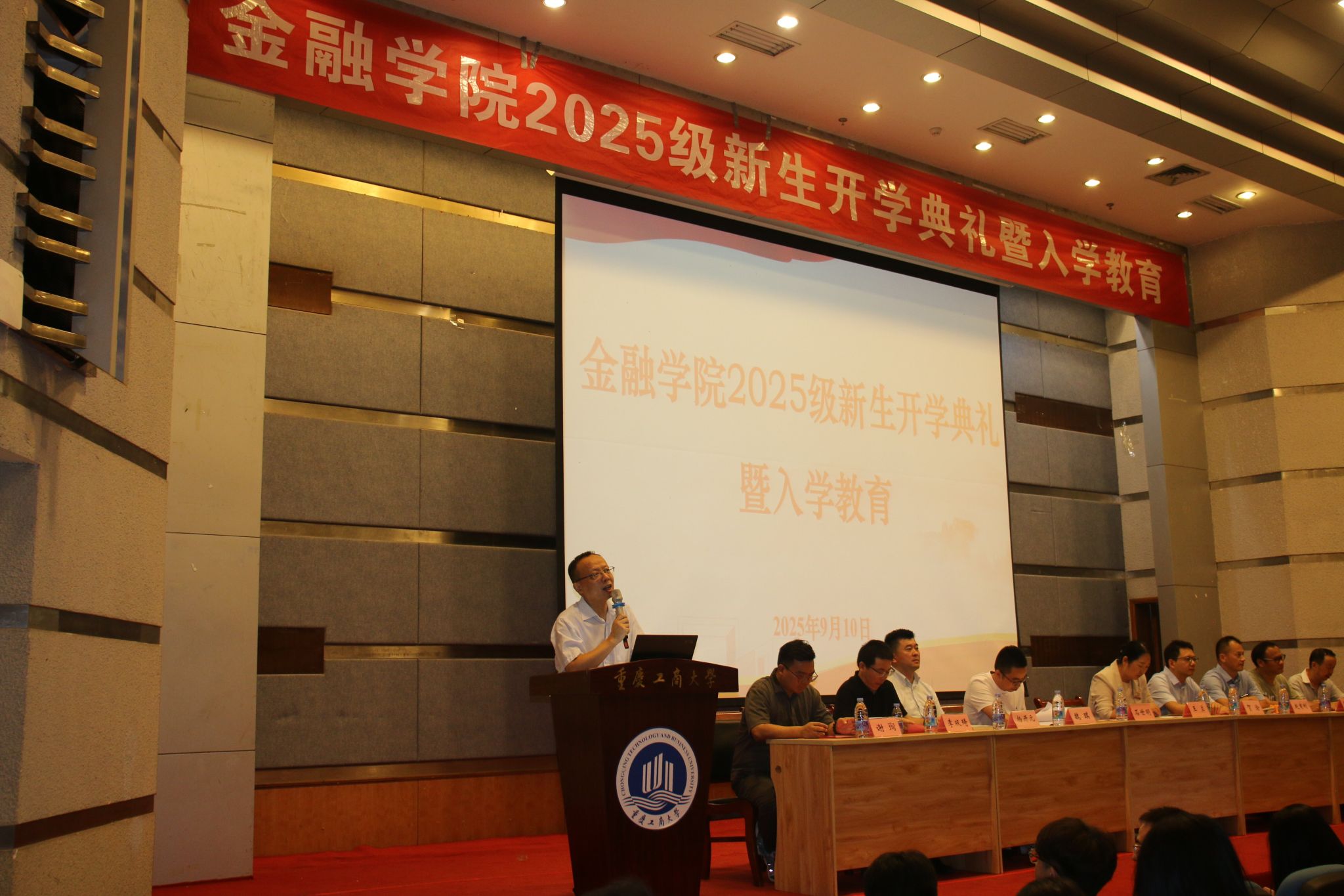 会上,党委书记、副院长石世明从立德树人的视角,通过大学的学习应该成为什么样的人出发,提出要成为品德高尚的人、具有金融+知识和技能的人、身心健康的人,最终成为中华民族伟大复兴的时代新人。党委副书记、院长王兰致辞,通过李白诗句“长风破浪会有时,直挂云帆济沧海”激励同学们要志存高远;引用孔子、孟子、范仲淹等古人之语阐释金融业在中国的发展脉络和作用并要求大家要心怀“国之大者”;阐释了现代金融在国民经济发展中的作用,希望同学们勇立潮头,成为时代的弄潮儿;引用“宝剑锋从磨砺出,梅花香自苦寒来”提出期许——志存高远、勤学笃行、勇于创新,最后“以金融之学,报国家之需;以无畏之心,逐梦星辰大海”予以嘱托。新生代表李思宇做了“山城逐梦,工商启航”为主题的发言。副院长魏琪从如何渡过大学生活给同学们进行引导,特别从学习方法、专业认知、学习目标认知等方面给予详细解读。最后系主任及教师代表李双琦、谢珣、张永鹏、谭湘渝对所在系的专业分别做了专业介绍。