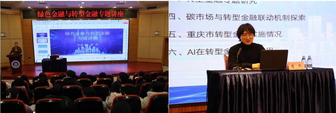 为深化学生对绿色金融与转型金融的理解,推动碳金融领域的人才培养,2025年11月20日,taptap点点体育在博智楼7200举办“绿色金融与转型金融”专题讲座。本次讲座由taptap点点体育副院长魏琪主持,特邀重庆征信有限责任公司绿色金融部部长曾杰担任主讲,2024级金融工程+环境工程(碳金融)复合型人才培养项目班、2025级金融工程专业全体学生,以及研究生碳金融专题课程班的部分学生参加本次讲座。