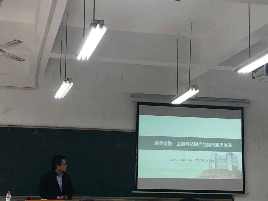 杨哲博士首先从什么是场景金融、科技平台和金融机构的场景金融之战、商业银行面临的场景焦虑、商业银行场景金融的逻辑和模式选择、以及商业银行发展的农村蓝海市场六个方面给我们分别介绍了金融科技时代下的银行服务变革。最后,杨博士还为现场的老师和同学就提出的问题进行耐心  解答,进行专业指导。