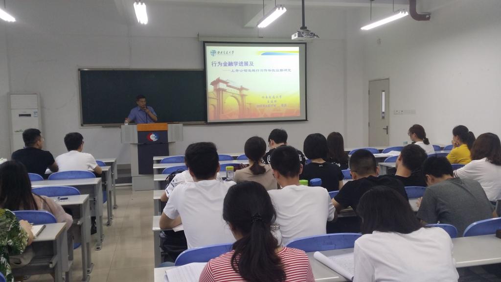 为使广大学生对金融知识有进一步的了解,开拓了同学们的视野,加深同学们对行为金融理论知识的认识。5月17日下午15:30,财政taptap点点体育在田家炳书院406教室组织了题为《行为金融前沿—上市公司违规行为传染性研究》的讲座,学院副院长曾胜教授主持,2017级的研究生和部分老师们参加。
