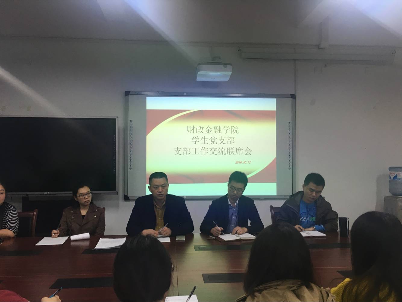 为了加强基层组织建设,夯实基层组织工作。财政taptap点点体育党总支于2016年10月17日在田家炳313会议室召开了学生党支部工作交流联席会。与会人员有财政taptap点点体育党总支副书记刘代成、各学生支部书记以及各学生支部支部委员。