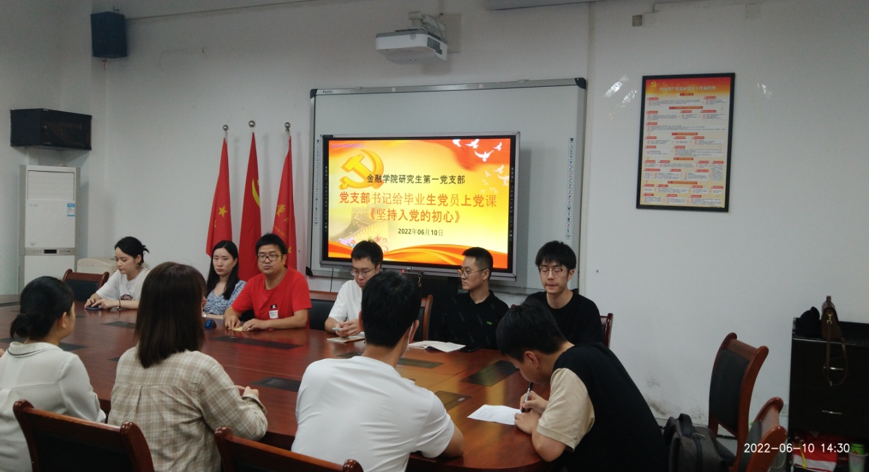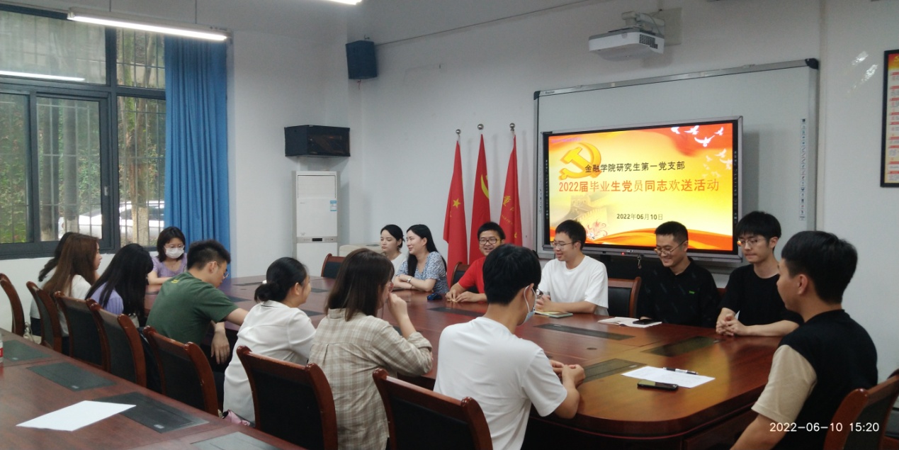 2022年6月10日下午,taptap点点体育研究生一支部开展了毕业生党员同志系列欢送活动。活动内容包括重温入党誓词、支部书记讲党课、毕业心得分享以及在校期间最后一次理论学习。活动由支部书记杨宁同志主持,支部全体党员出席。