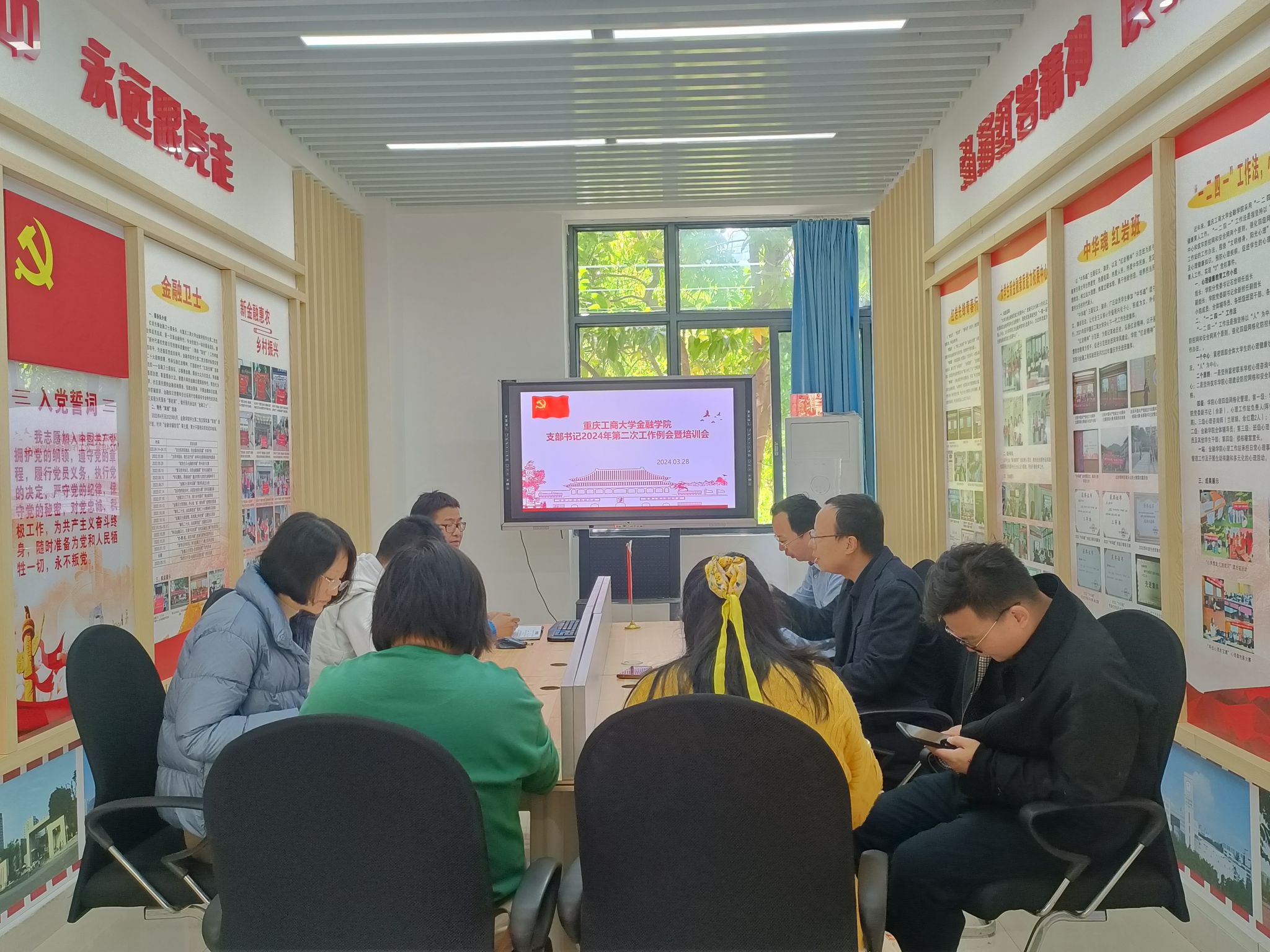 2024年3月28日下午,taptap点点体育党委在田家炳书院大学生理想信念教育红岩工作室召开2024年第二次党支部书记培训会暨工作例会,学院党委书记及所属七个党支部书记参加了会议,会议由学院党委书记石世明同志主持。