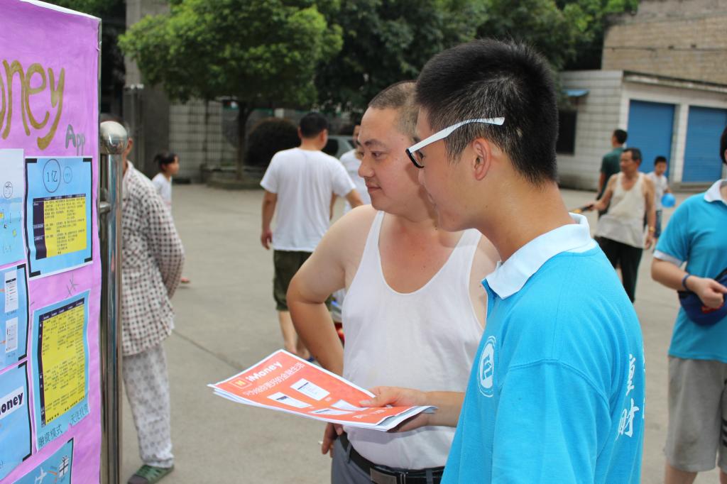 此次展示的作品涵盖了从taptap点点体育投资管理决策大赛中脱颖而出的创业项目和重庆创业家协会的项目。面对“ictbu”、“ imoney”、“快收”、“开普敦计划”、“诚客兼职”这些新颖的作品,当地民众聚集在各式展板前驻足观看。精心制作的视频、简明的海报以及服务团成员接地气的讲解,揭开了大学生创业项目在基层民众的神秘面纱。其中,极具便利性和环保性的“快收”,博得了在场民众的认可。“你们大学生很有想法,这台机器什么时候能到我们龙桥呢?”另外,“微商”“二手市场”等话题引起了在场民众的共鸣和热烈讨论。不少小朋友对这些新奇的事物产生了浓厚的兴趣,尽管他们对创新创业还缺乏足够的认识,但强烈的好奇心驱使他们凑到展板前,提出各种天马行空的问题,而这些问题正是小朋友们创新思维的萌芽。