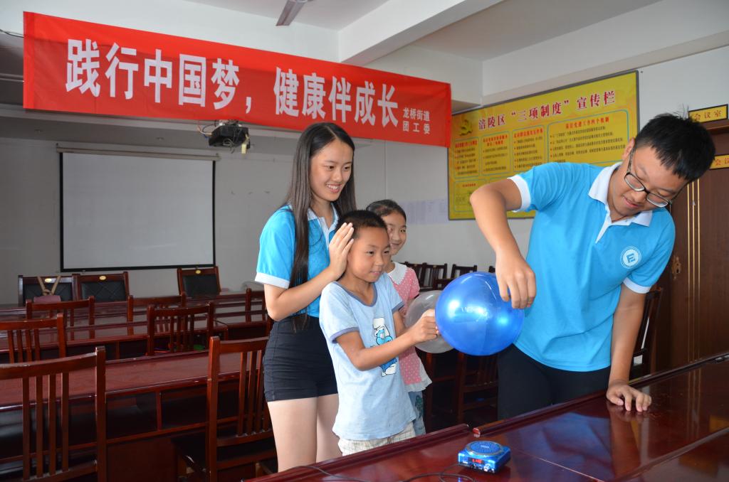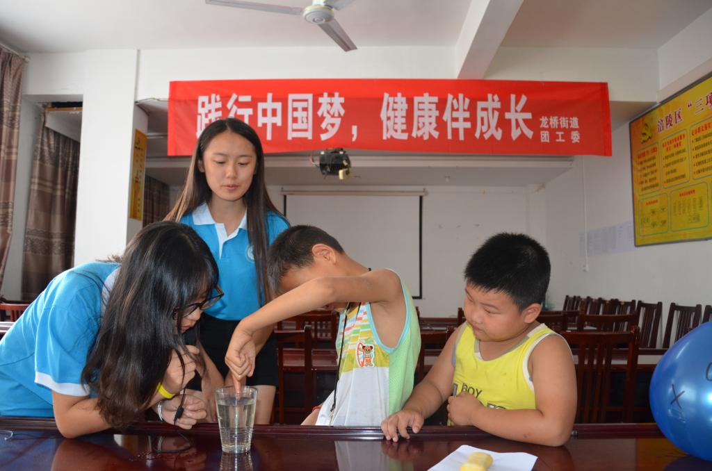 7月22日午后,载着雨后初晴,taptap点点体育财政taptap点点体育创新创业服务团来到涪陵区龙桥街道北拱社区与龙桥街道青年志愿者一起开展“见证奇迹”科普小课堂,为孩子们开启了探索之旅。