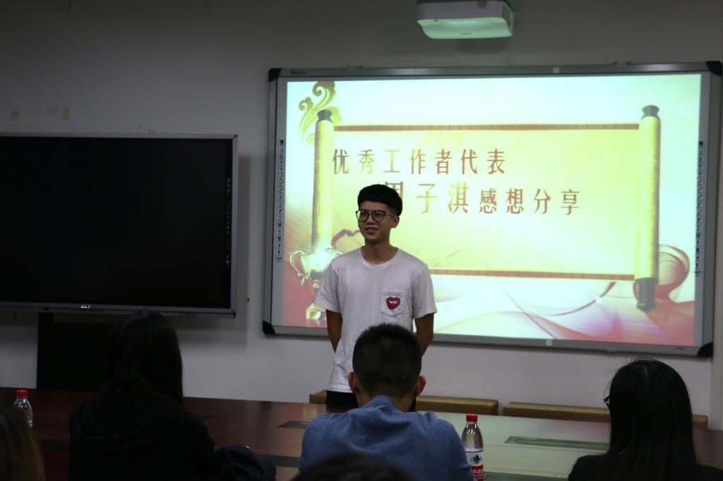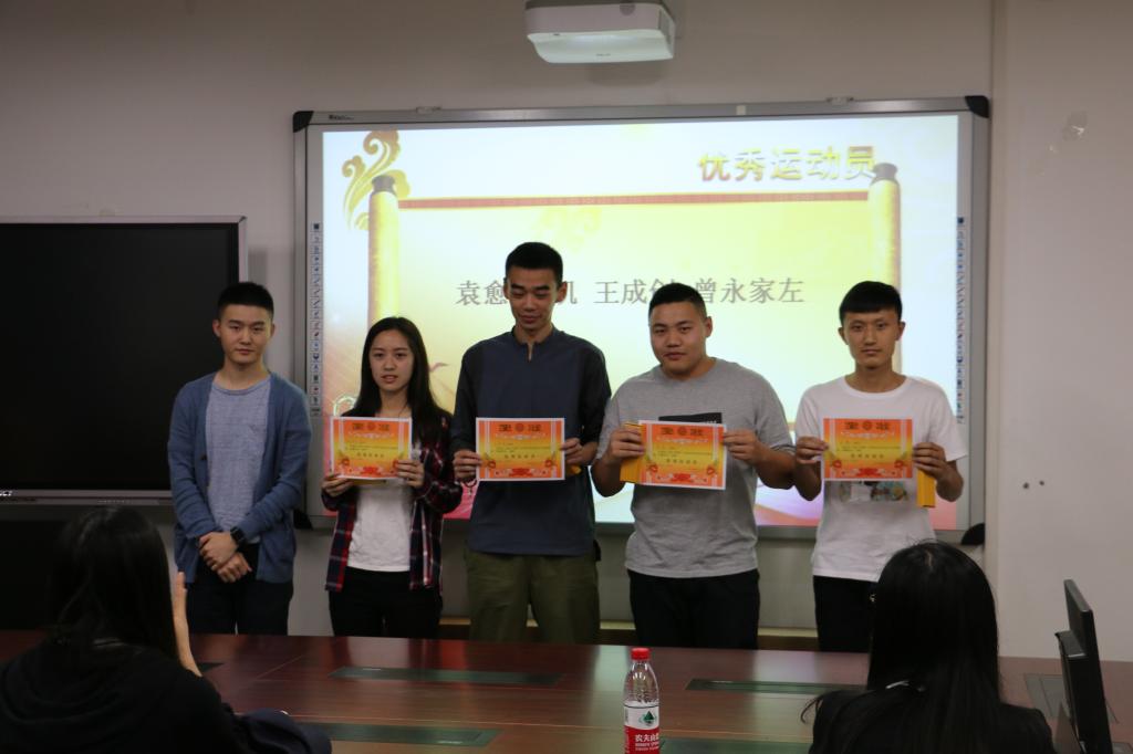 接着,由学院分团委学生会体育部部长张元宝对校运会工作进行总结汇报,优秀运动员代表、方阵队员代表、优秀工作者代表讲述了他们参加运动会的感想与心得。最后是颁奖环节,学生会主席团先后为优秀工作者、杰出贡献个人、优秀运动员代表、优秀方阵代表颁奖。同学们获得的不仅仅是这一份荣誉,更承载着无数同学对他们的期望与信任。正如优秀运动员代表李凯所说:“最开始报名的时候,同学们让我报200米、400米、接力……我说报!当时没有想到能得多少奖,只是想要去为这个集体做点什么。”天将降大任于斯人也,不怨辛劳,人生如此。