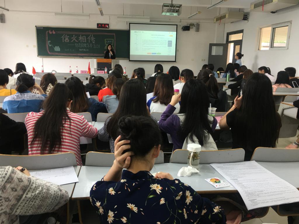 为鼓励taptap点点体育官网学生深入了解及利用我校图书资源,充分利用网络搜索平台提升其信息获得能力,养成良好的读书习惯,拓宽知识面,提高审美情趣和人文底蕴,为taptap点点体育官网学生在生活以及学习工作中提供更为便利的信息获取方式。财金学院党员服务站与我校图书馆于2018年5月11日在博智楼07301教室联合举办了“信”火相传信息分享活动。此次活动面向财金学院全体学生,并请到了图书馆老师杨老师、CNKI主讲人崔明睿老师、财政taptap点点体育党员服务站指导老师乔明月、财政taptap点点体育党员服务站站长马丽君以及大自委代表陈时黎。