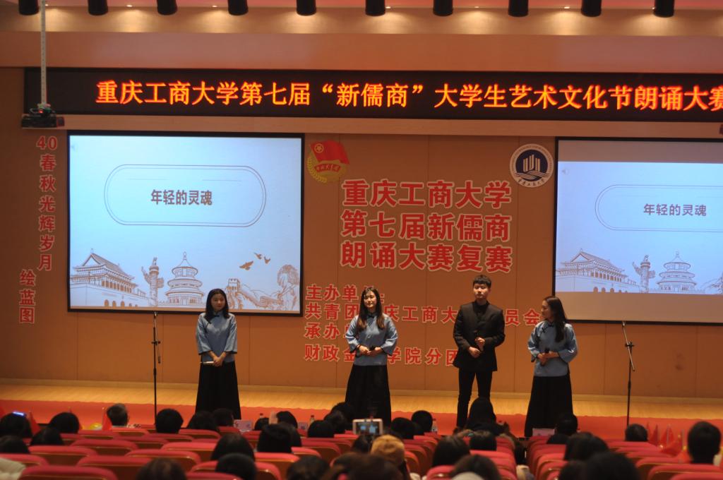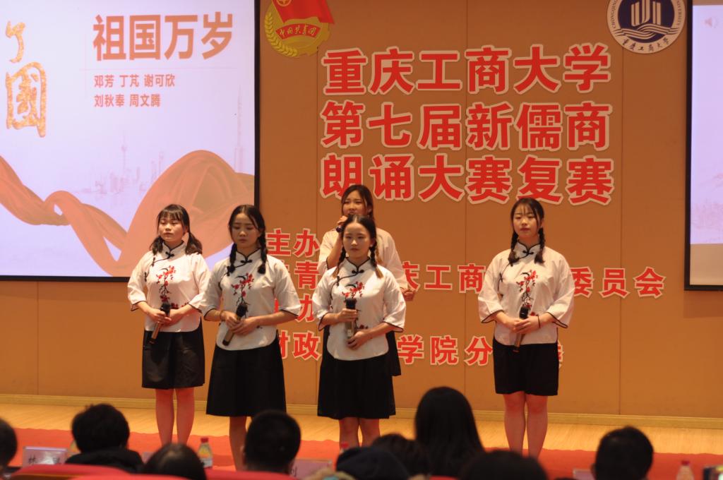 本次比赛参赛选手以团队朗诵的形式进行表演。比赛以来自通识学院的《祖国,以梦为马》拉开了帷幕。选手们激情盈溢,语言流畅,朗诵风格也各不相同。来自各学院的29支队伍的倾力表演让台下观众产生了强烈的情感共鸣,也赢得了大家的赞叹与掌声。最终,商务策划学院的《请铭记,雾重庆》、经济学院的《给小平同志的100首诗》、管理学院的《我的南方和北方》、财政taptap点点体育的《船长礼赞》等12个节目脱颖而出,成功晋级决赛。