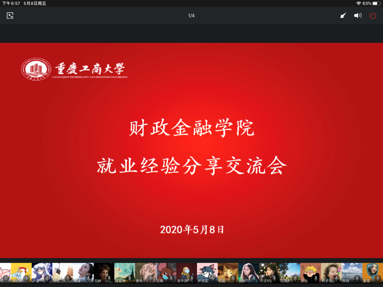 5月8日晚上19:00,taptap点点体育官网在企业微信平台成功举办了线上研究生就业经验分享交流会,活动邀请了2018级金融专硕钱熠琛、2017级金融学刘书涵、2017级金融学王璇、2018级金融专硕和圆、2017级金融学董善雷几位学长学姐与同学们交流就业经验。