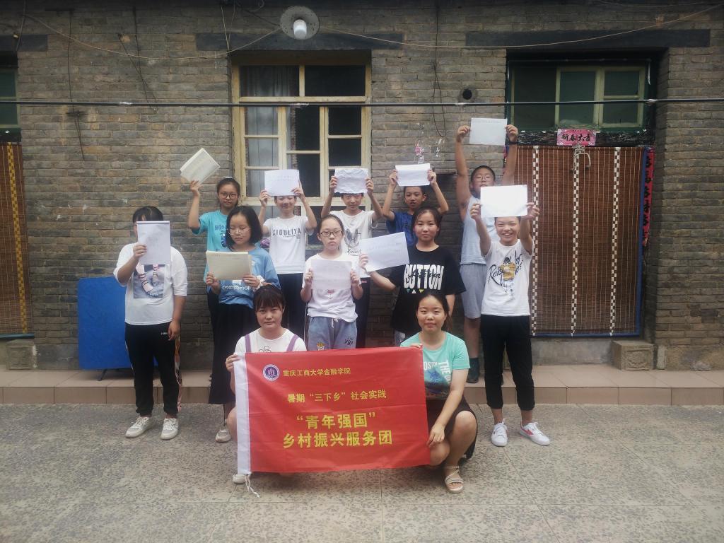 服务团成员针对乡村教育存在师资力量不足、学习资源相对缺乏等问题,对家乡的中学生开展支教活动,讲授基础理论课,帮助孩子们重温课本理论知识,帮助他们更好地学习和理解重点难点。得知本村曾发生过金融诈骗案,服务团成员利用专业所学,特地开展了一堂金融常识课程,帮助他们提升自己的金融意识,避免走入理财陷阱。扶贫必须扶志,在辅导课业的同时服务团成员还引入《习近平与大学生朋友们》进行学习理念、成长理念、价值观的宣讲。“中国开放的大门只会越开越大!”这是一位同学在听完这堂分享课之后的感想。从他们的听课专注度、他们的激情澎湃、他们的积极答复,实践团成员都真切感受到孩子们对国家对家乡的热爱以及想要成才以建设更好家乡的信念。