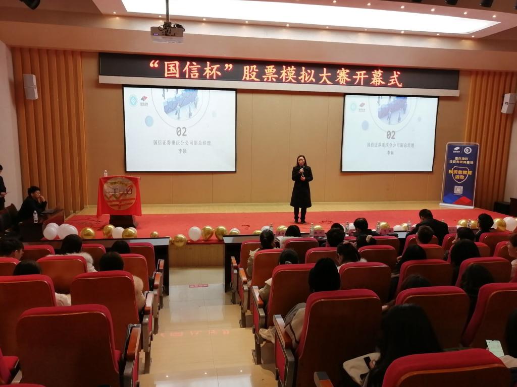 12月4日,重庆工商大学金融证券协会携手国信证券重庆分公司于田家炳书院209报告厅成功举办“国信杯”股票模拟大赛开幕式,282位来自不同专业的学生积极参加了本次活动,本次开幕式取得圆满成功。