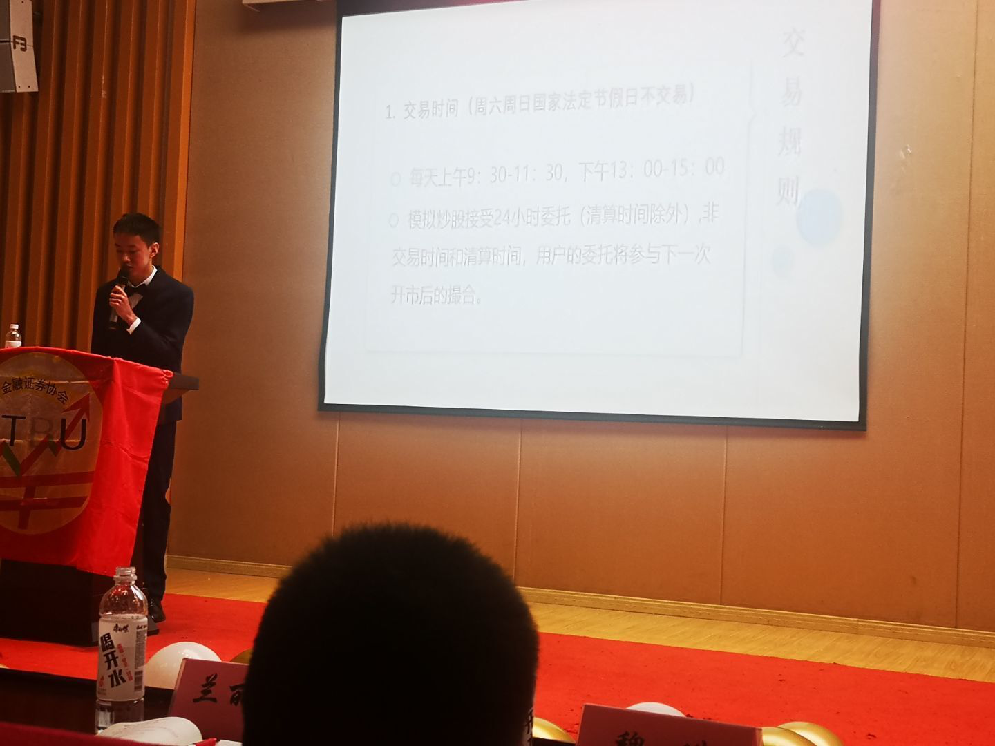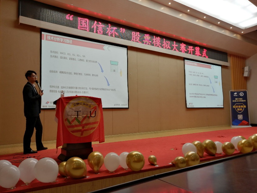 活动最后,金融证券协会投研部负责人陈启涵为现场的同学们详细介绍了本次“国信杯”股票模拟大赛的比赛详情规则,注意事项和软件使用技巧,极大增加了同学们的参赛热情。