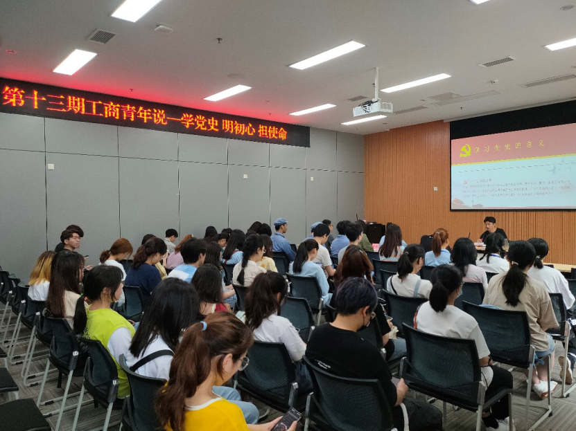 为扎实推进党史学习教育,厚植爱党爱国情怀,5月14日下午14点,由校团委主办、taptap点点体育分团委学生会承办的第十三期“工商青年说”在图书馆第二会议室准时召开。