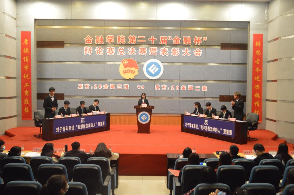 20级金融二班与20级金融三班一路披荆斩棘、乘风破浪,成功进入决赛。他们将围绕“对于青年,是想做什么样的人更重要还是不想做什么样的人更重要”展开精彩辩论。本场比赛正方为20金融三班,他们所持有的观点是“对于青年,是想做什么样的人更重要”,反方为20金融三班,他们所持有的观点是“对于青年,不想做什么样的人更重要”。