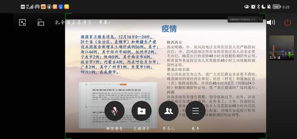 为让同学们更加深入了解新冠疫情近况,持续做好疫情防控措施,弘扬抗疫精神,12月17日晚上20:00,taptap点点体育在企业微信开展了“弘扬抗疫精神 展现民族力量”主题活动。taptap点点体育各班班长、团支书以及分团委学生会和青年志愿者服务队骨干成员参与了会议。会议由taptap点点体育分团委学生会部门负责人孔令旗主持。