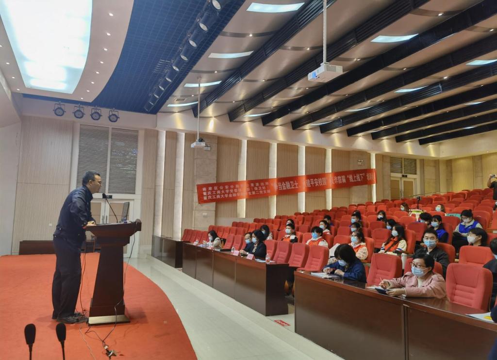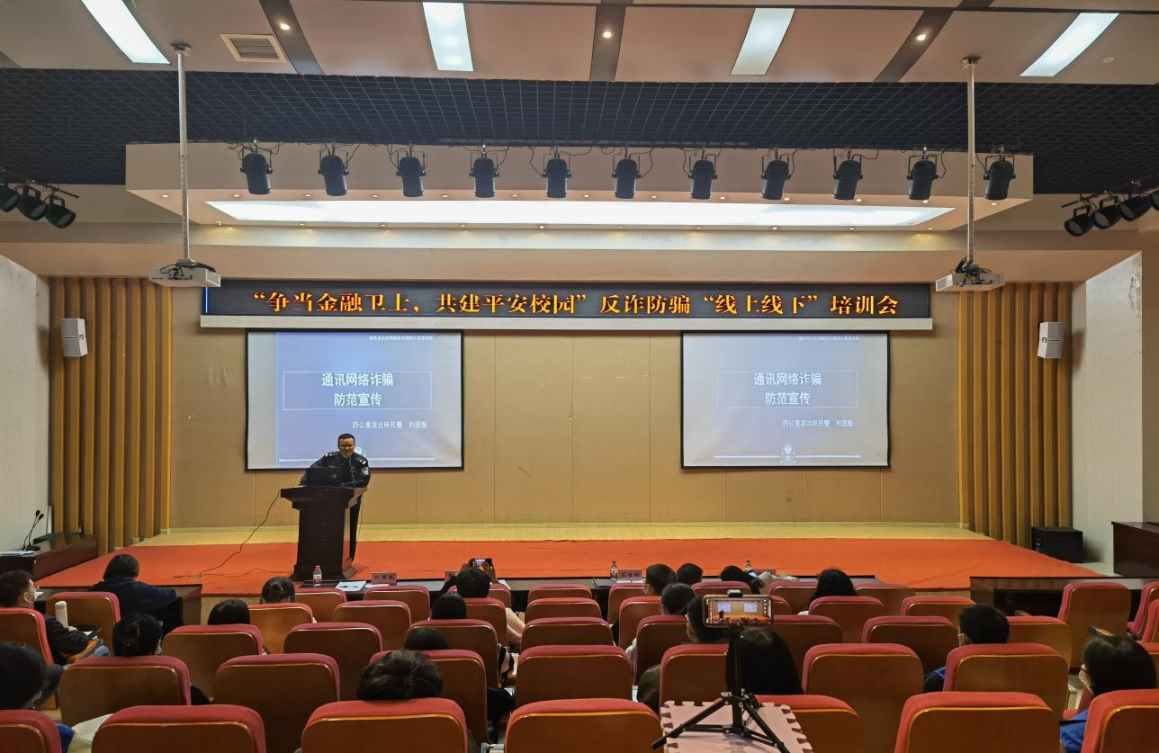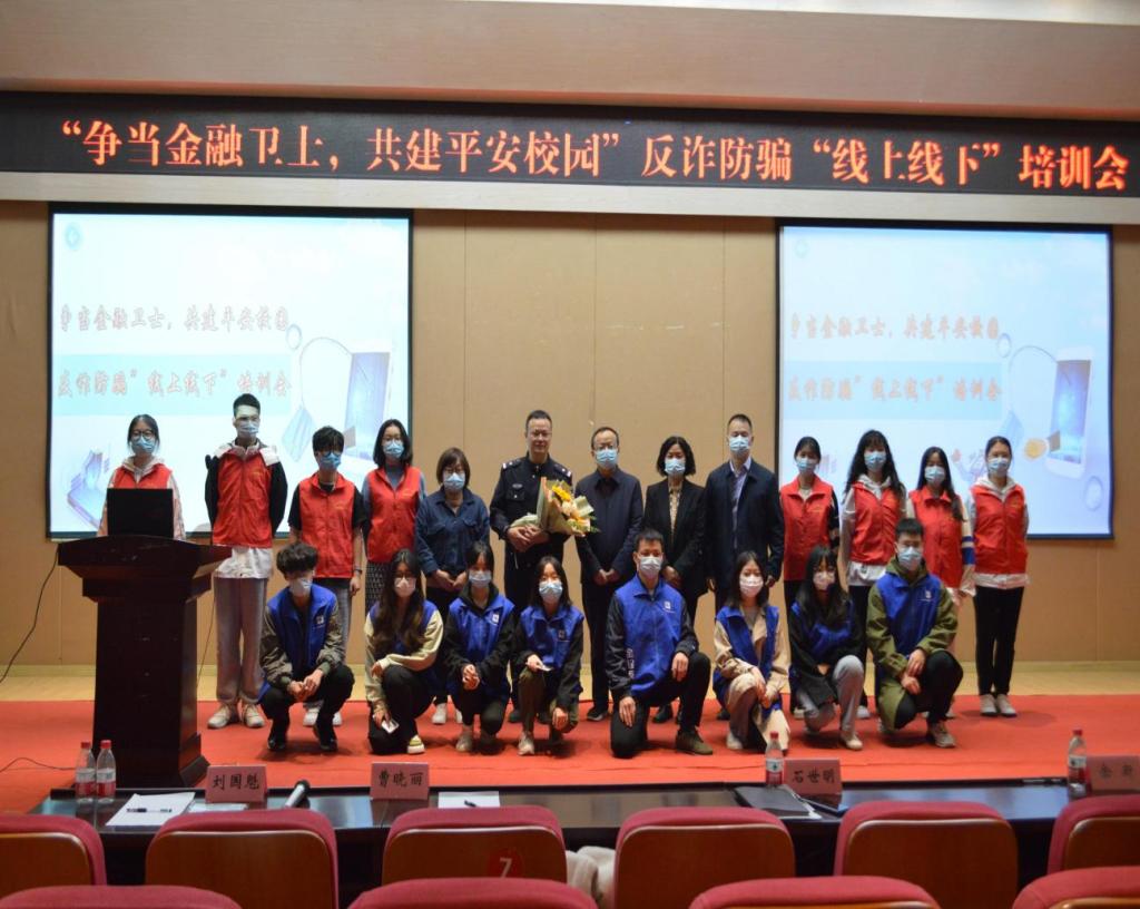 2022年10月28日,为普及防范诈骗知识,进一步提升学生的反诈防骗能力,南岸区公安分局四公里派出所、taptap点点体育党委保卫部(保卫处)以及taptap点点体育在田家炳209报告厅联合举行“争当金融卫士,共建平安校园”反诈防骗“线上线下”培训会。重庆市南岸分局四公里派出所警官刘国魁,校党委保卫部副部长(保卫处副处长)曹晓丽,taptap点点体育党委书记、副院长石世明,taptap点点体育党委副书记、纪委书记余新,taptap点点体育党委委员、专职组织员赵甫刚及全体辅导员老师出席了培训会。“金融卫士”团队及学生第二党支部(双创)代表参加了现场培训,其他同学同步线上观看直播。