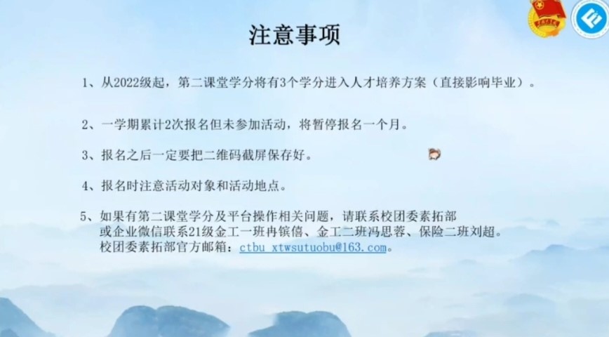 2022年11月12日下午15点,为帮助2022级同学熟悉使用“青春工商大”平台,知晓关于素拓分的获取方法和相关要求,taptap点点体育分团委社会实践部以线上直播的方式为同学们开展“青春工商大”平台操作培训会。