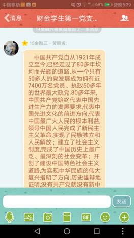 2017年7月20日,taptap点点体育财政taptap点点体育党委学生第一支部组织全体党员进行了暑假第一次交流学习--《学习党的历史、革命先辈和先进典型》。各位同志在本次交流中纷纷发表了对党的了解和感悟,并分享了其信仰的革命先辈以及他们的光辉事迹。