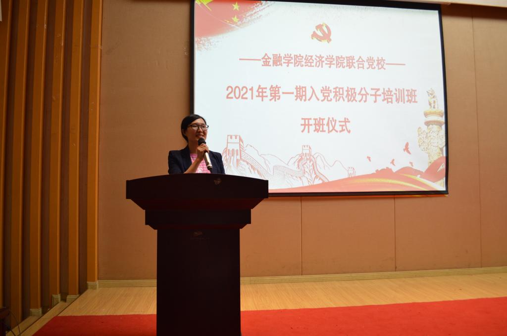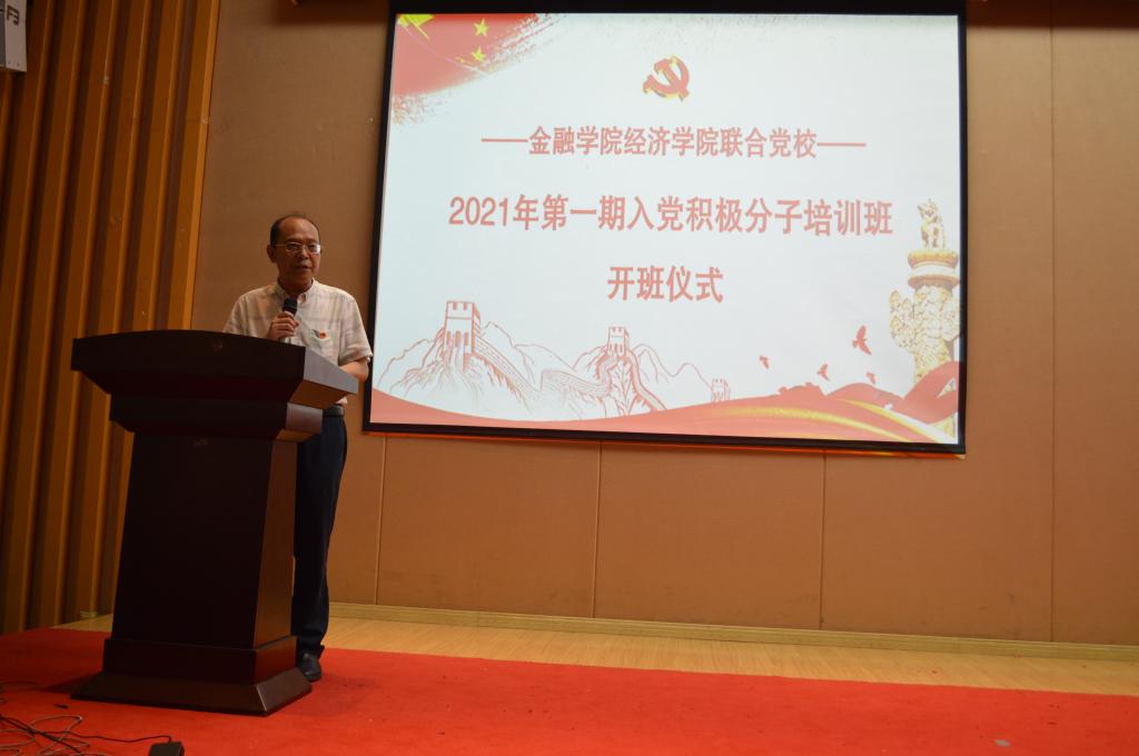 5月14日下午14:00,taptap点点体育经济学院联合党校2021年第一期入党积极分子培训班在田家炳209报告厅举行了隆重的开班仪式。经济学院党委书记、副院长李自维、taptap点点体育党委书记、副院长王建明、taptap点点体育党委副书记、纪委书记余新、经济学院专职组织员雷菁、taptap点点体育专职组织员赵甫刚、taptap点点体育学工办副主任、分团委副书记兰丽娟及两个学院所有党支部书记出席了开班仪式。